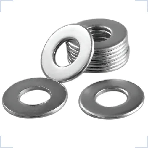 As arruelas têm a função de distribuir igualmente a força de aperto entre a porca, o parafuso e as partes montadas.